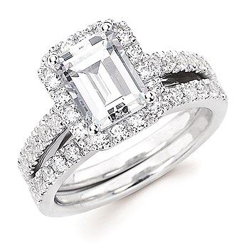Halo Bridal: 1/2 Ctw. Diamond Halo Semi Mount Available For 2 Ct. Emerald Cut Center Diamond In 14K Gold