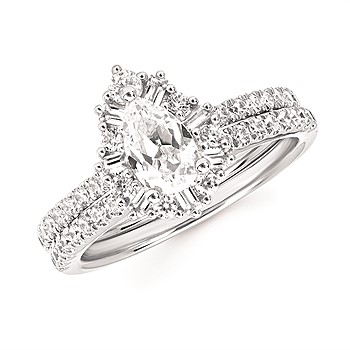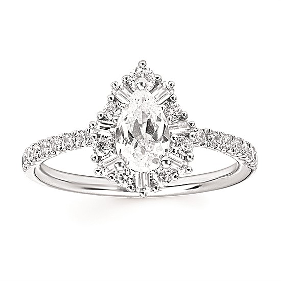 Engagement Ring Halo Bridal: 1/2 Ctw. Diamond Semi Mount shown with 1/2 Ct. Pear Center Diamond in 14K Gold