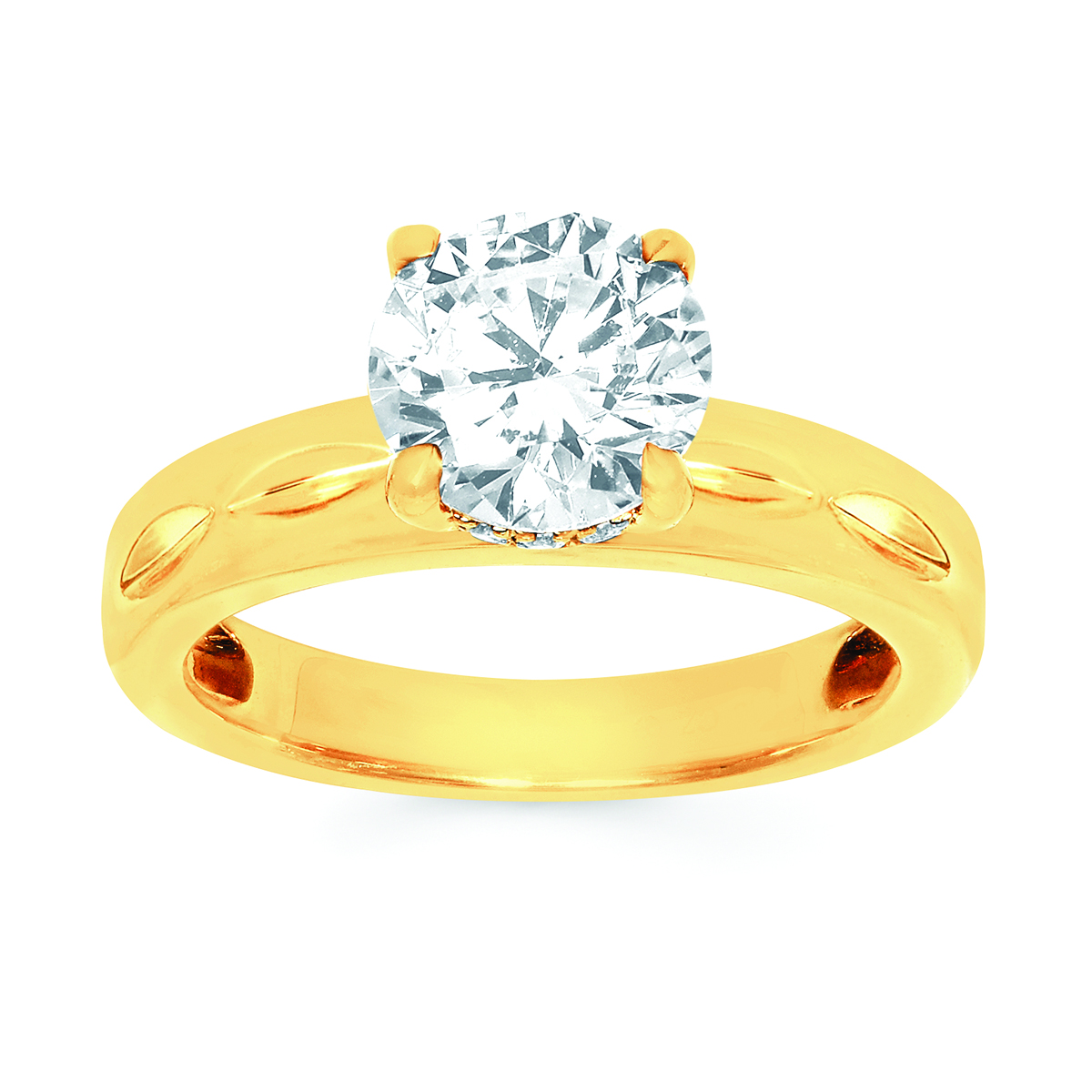 Engagement Ring Classic Bridal: 0.07 Ctw. Diamond Semi Mount shown with 2 Ct. Round Center Diamond in 14K Gold